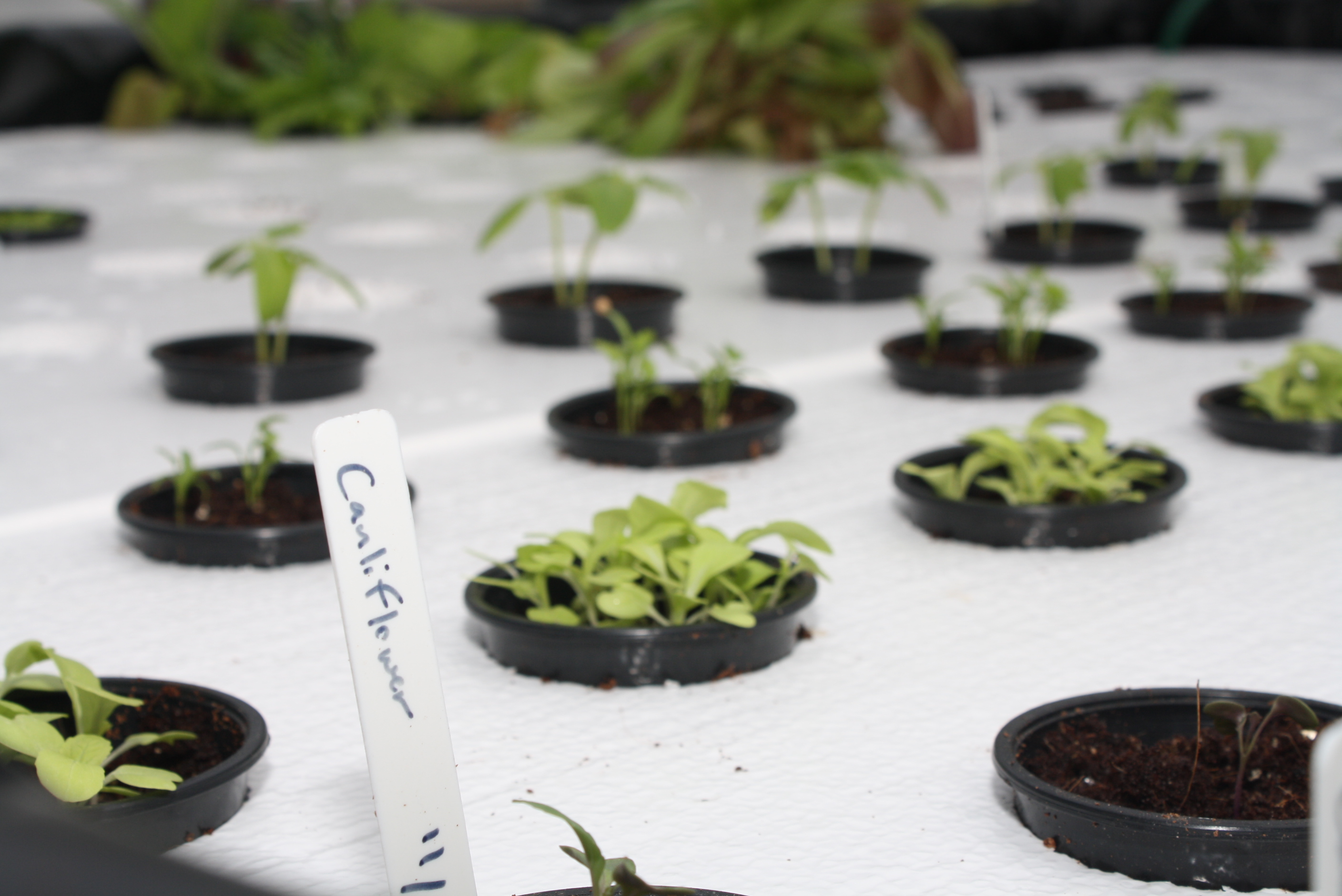 The raft method floats Styrofoam on the water and the plants’ roots also go into the water. Various plants — Kale, Thai Eggplant, tomato and cauliflower — have begun to sprout in three weeks.