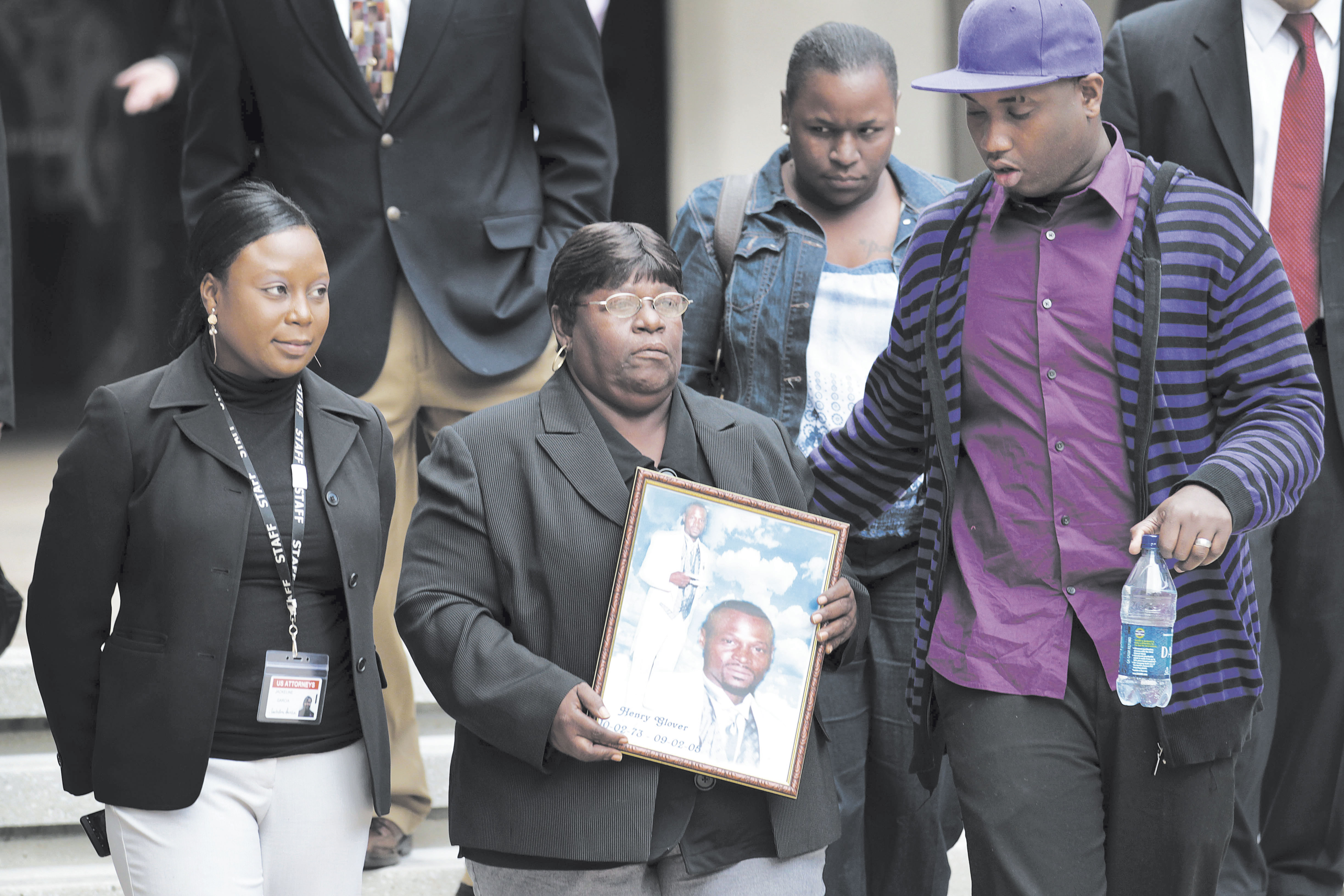 Edna Glover, second left, mother of Henry Glover, leaves Federal Court holding his photo, after the sentencing of two former New Orleans police officers in his shooting death and burning of his body in New Orleans, Thursday, March 31, 2011. A federal appeals court on Dec. 17 overturned the conviction of former New Orleans police officer David Warren, one of the former cops tried and convicted of an assortment of charges related to the murder, saying he deserved a new trial. The ruling which comes two years after convictions were announced in December 2010, makes Warren the second former police officer in the racially polarizing case to be granted a new trial.