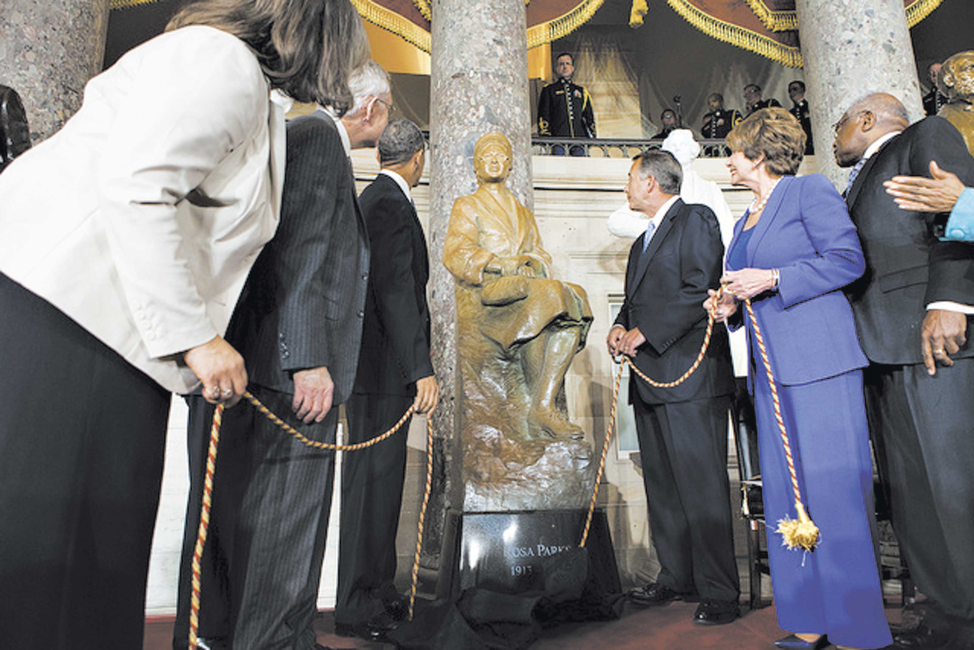 Parks, whose casket became the first of an African American to lie in the Capitol Rotunda when she died in 2005 at age 92, now stands among 100 of the most notable leaders in our nation’s history.