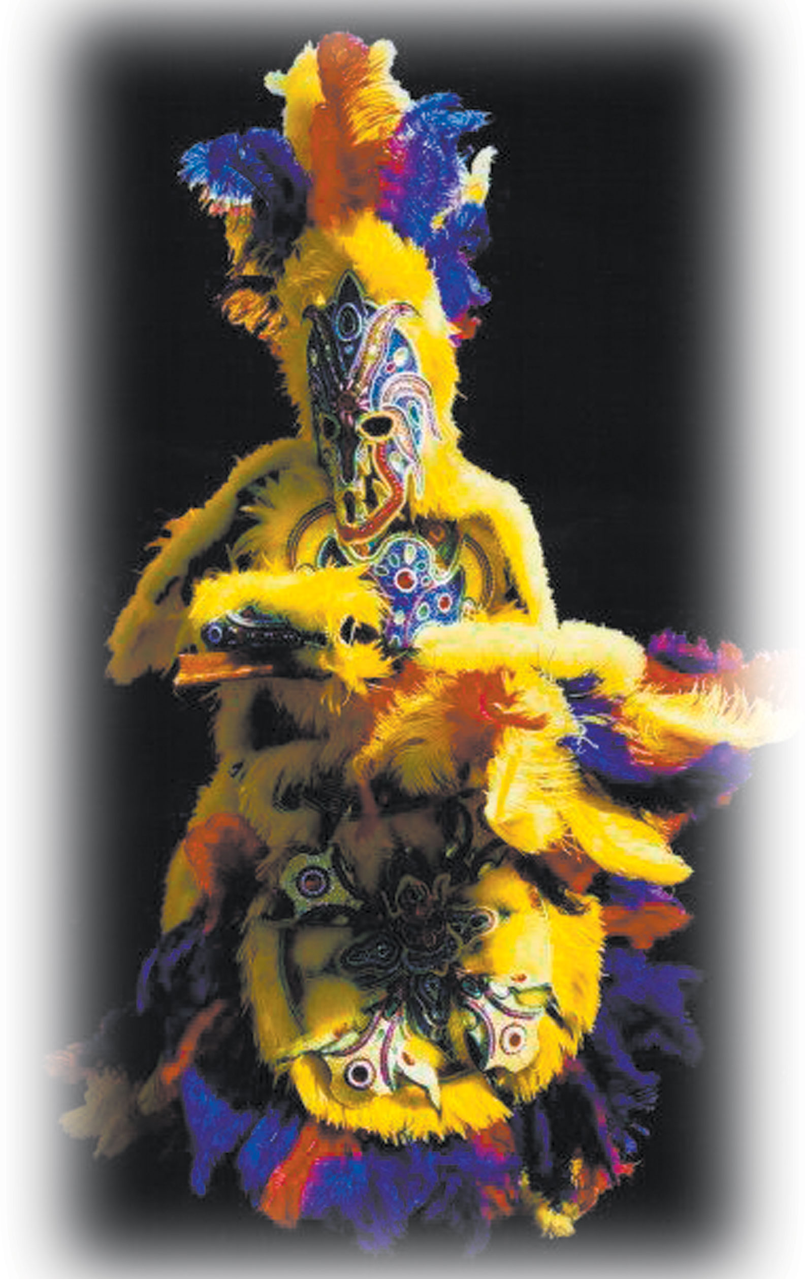 Mallory’s involvement with the Indians came early in life. His uncle, George Palfry was the Chief of the original Yellow Jackets. As a small child, he would help in such tasks as pulling apart feathers. Growing up in the 5th Ward, Mallory was surrounded by the street cultures of second lines and Indians. Though he was always deeply involved in the Mardi Gras Indians and had uncles who ran with the Yellow Pocahontas, he didn’t mask until 1994.