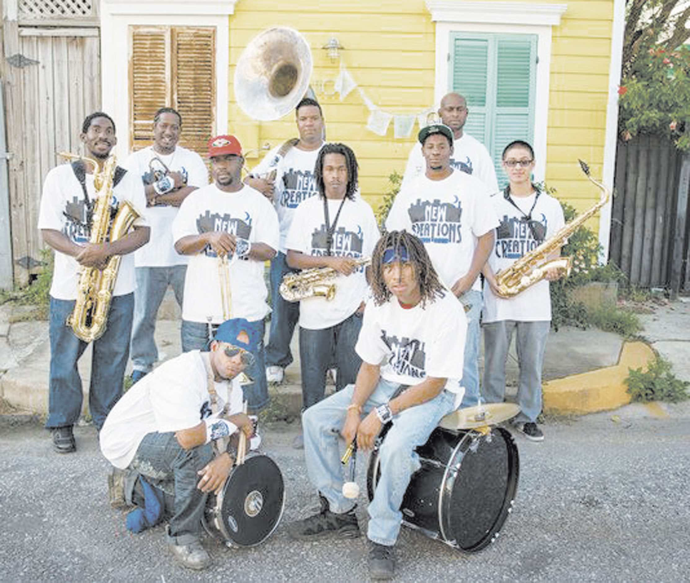 The members of the New Creations didn’t take the traditional New Orleans route of playing in high school bands and then jumping into the brass band scene. For instance, Gancayco arrived in this city from California just three years ago to attend the University of New Orleans in the jazz studies program. The core members of the 10-piece ensemble – Watson, trombonists Royce and Ronald Lockett and tuba player Wayne Harris – were all in the Sarah T. Reed High marching band under the direction of Wilbert Rollins. After graduation, they laid down their instruments and went their separate ways. Fifteen years later, they were back in the city and when Royce Lockett came across some instruments, the inspiration came to them and they said: “Let’s start a brass band!”
